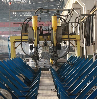 H 型钢自动焊接机采用交流变频器调速控制,具有运动平稳可靠,返程还具有自动跟踪导弧对中机构,能确保焊枪自动、准确对中。主机与焊接实行联动控制,并配套焊剂自动输送回收系统,操作方便,效率高。